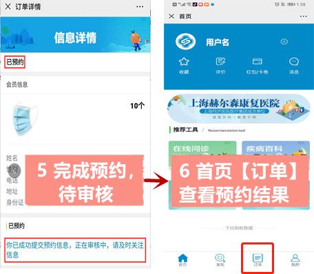 系统每期活动结束,审核通过后将随机产生预约成功用户(因口罩物资紧缺,预约成功用户每人最多可获得10只口罩)。上海赫尔森康复医院小助手将向成功预约用户发送预约成功信息及订单编号,用户亦可通过活动页面【订单】栏查询预约结果,获取快递单号。